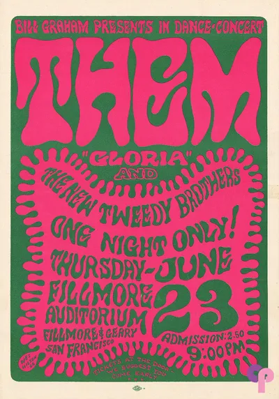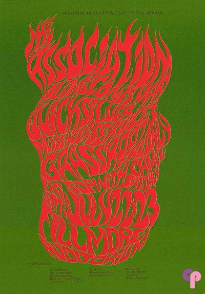 اگر آلفونس موچا با خطوط منحنی خود زیباییِ پاریس را ساخت، وس ویلسون کسی بود که در اواسط دهه ۱۹۶۰ تصمیم گرفت الفبا را ذوب کند و با آن، هویت بصریِ توهمآلودِ سانفرانسیسکو را بسازد. در آن زمان، پوسترهای کنسرت صرفاً ابزارهایی اطلاعرسانی بودند که باید با فونتهای خوانا و چیدمانهای مرتب، زمان و مکانِ رویداد را اعلام میکردند. اما ویلسون که طراح اصلی سالن مشهور «فیلمور» (Fillmore) بود، با چالشی فنی روبرو شد که به جرقهی یک انقلاب بصری تبدیل شد: او باید نامهای طولانیِ چندین گروه موسیقی را در فضای محدودِ یک پوستر جا میداد، بدون اینکه فضای سفید و خالی باقی بماند. راهکار نبوغآمیز او، الهام گرفتن از یک حروف نگاری در یک پوستر (اثر آلفرد رولر) و ایجاد تغییرات بسیار زیاد درآن بود. ویلسون تصمیم گرفت حروف را از حالت جامد و استخوانیِ خود خارج کند؛ او کلمات را آنقدر میکشید، باد میکرد و میپیچاند تا تمام حفرههای کاغذ پر شود. در طرحهای او، حروف دیگر مثل سربازانِ منظمِ کنار هم نمیایستادند، بلکه مانند مواد مذاب یا شعلههای رقصانِ آتش در هم تنیده میشدند و مرز میان «نوشتار» و «تصویر» را از میان برمیداشتند.